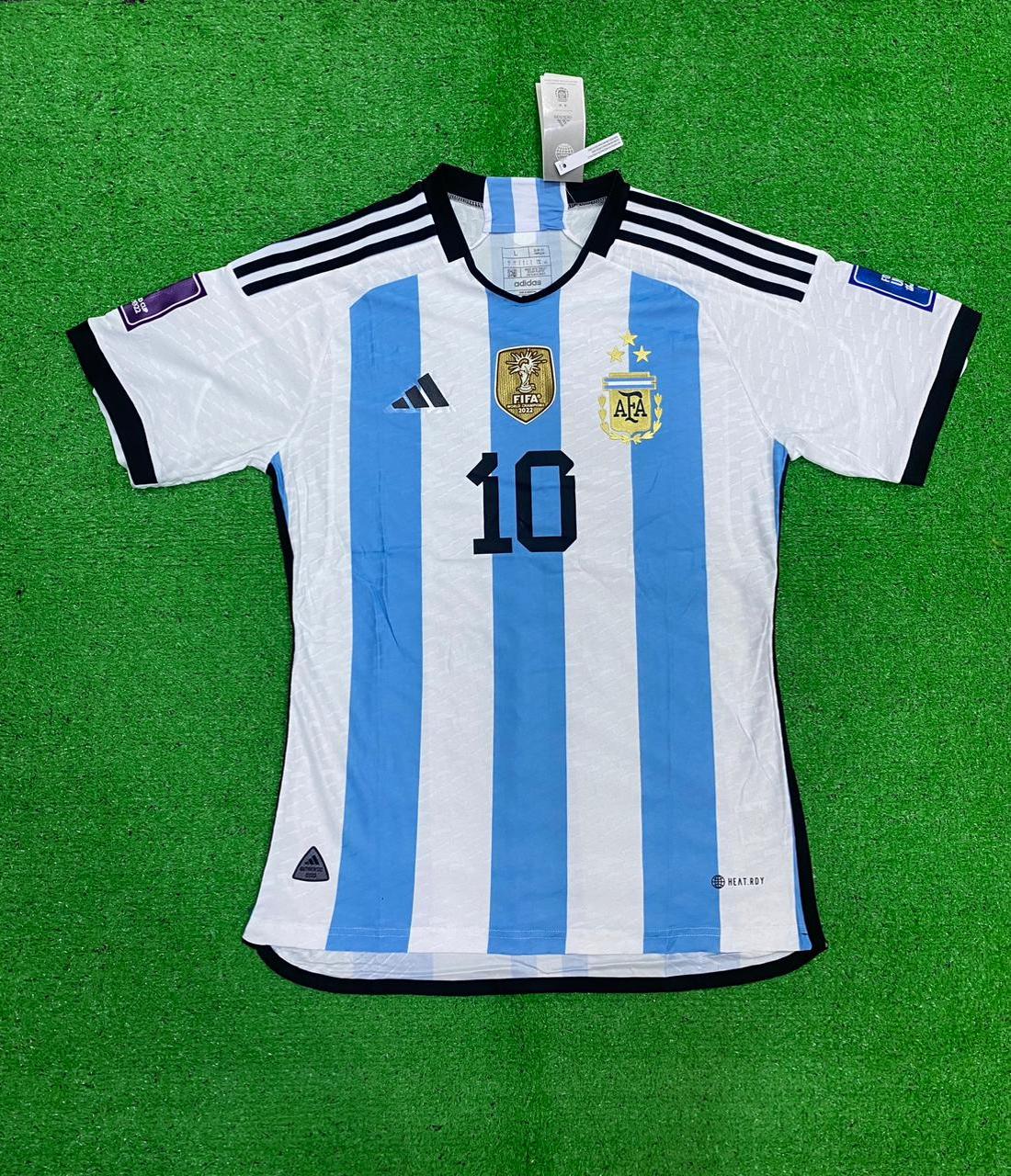 Argentina MESSI 10 WC Home 3 Star Jersey With All Badges